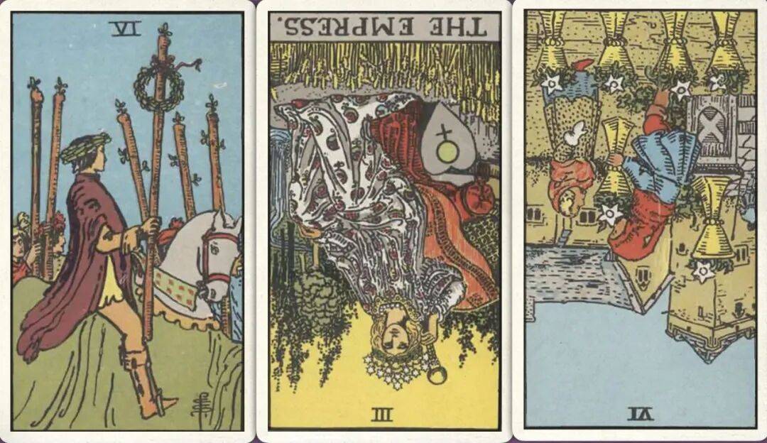牌:权杖六+ 皇后- 圣杯六-