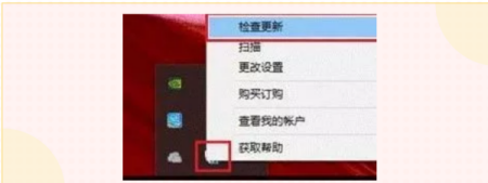 以McAfee为例,我们可以在桌面右下角找到对应图标,检查更新并按提示更新后重启。