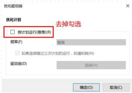 优化完毕后点击更改设置,取消按计划运行。