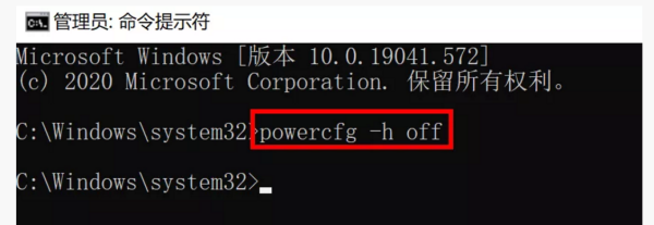 powercfg -h off,然后回车就可以关闭系统休眠功能啦~