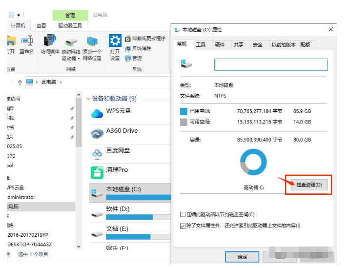 打开“此电脑”,选择C盘右击“属性”,对磁盘进行“磁盘清理”,如下图: