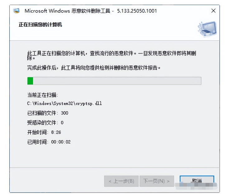 通过WIN+R,打开“运行”,输入“MRT”命令,打开“microsoft windows恶意软件删除工具”,扫描并删除流行的恶意软件,点击“下一步”,选择“快速扫描或完全扫描或自定义扫描”(根据自己的情况来选择),选择好后,直接下一步,此工具就会对电脑中恶意软件进行扫描和删除。