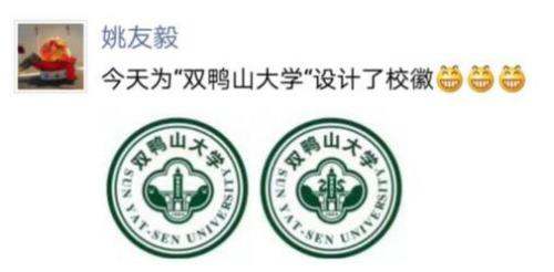 这些“新校徽“不仅得到了中大官微转发,甚至引得中山大学校徽设计者姚友毅副教授也出来赶了一趟热闹,设计了一个“双鸭山大学”校徽。