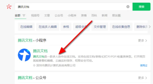 1、首先打开电脑中的位置APP,在搜索框中输入【腾讯文档】进入到主页面‘;