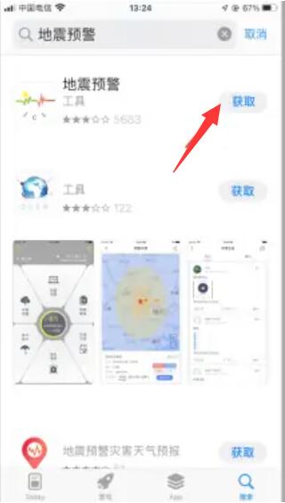 2、然后就在最上方的搜索框中输入【地震预警】,之后点击的【获取】下载;