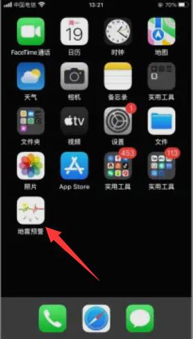 3、在地震预警APP下载完成之后,在桌面中点击【地震预警】APP打开;