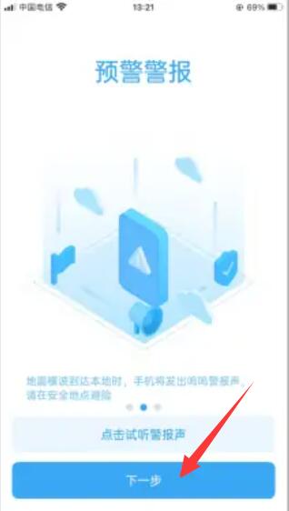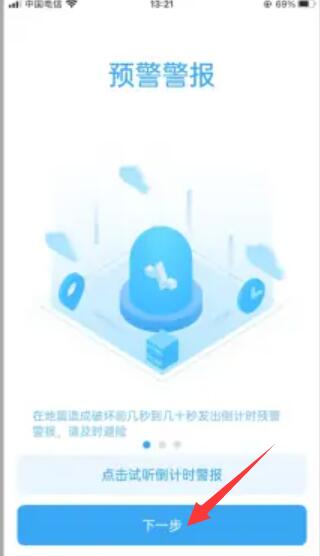 5、接下来就可以进入到预警预报的界面中,找到【下一步】选项点击;
