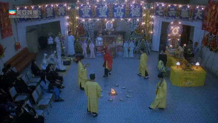 《天才与白痴1997》里,许志安饰演的喃呒师傅就是舞蹈演员兼职的,因为擅长高速自旋和连跳三次火盆成为行业标杆。