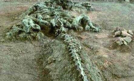 8月8日,看管苇塘的工人发现遗骸,其形态与目击者描述一致:头部双角、脊骨29节、鳞片两大筐。