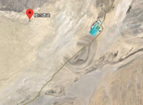 另外,罗布泊是一个人耳的形状,现在我们用卫星地图也可以明显看出,随便截图一下。