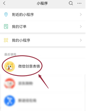 2、之后跳转到小程序的功能页面,找到【微信创意表情】边框点击;