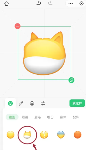 3、然后在表情制作的页面,选择下图箭头所示的【脸型】;