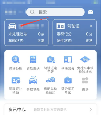1、首先打开交管12123APP中,登录账号进入到下图的页面,点击下图箭头的图标;