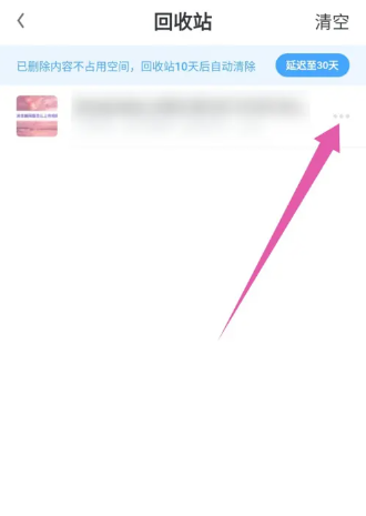 3、接着跳转到回收站功能专区,选择需要恢复的文件右侧的三个点;