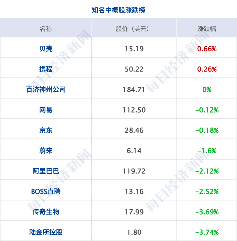 中概股多数下跌,纳斯达克中国金龙指数跌0.94%,阿特斯太阳能跌超5%,老虎证券、禾赛科技、阿里巴巴跌逾2%。