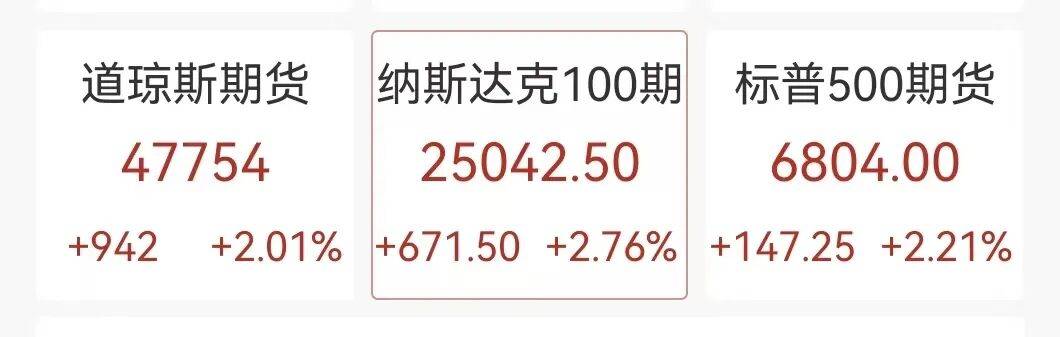 北京时间4月8日清晨,美股盘后,三大指数期货全线拉升,涨幅均超2%。