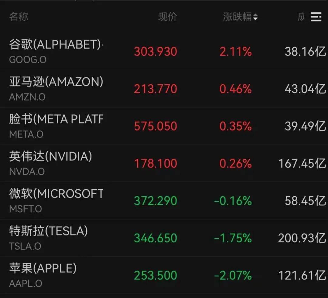 谷歌、亚马逊、脸书、英伟达均收涨;