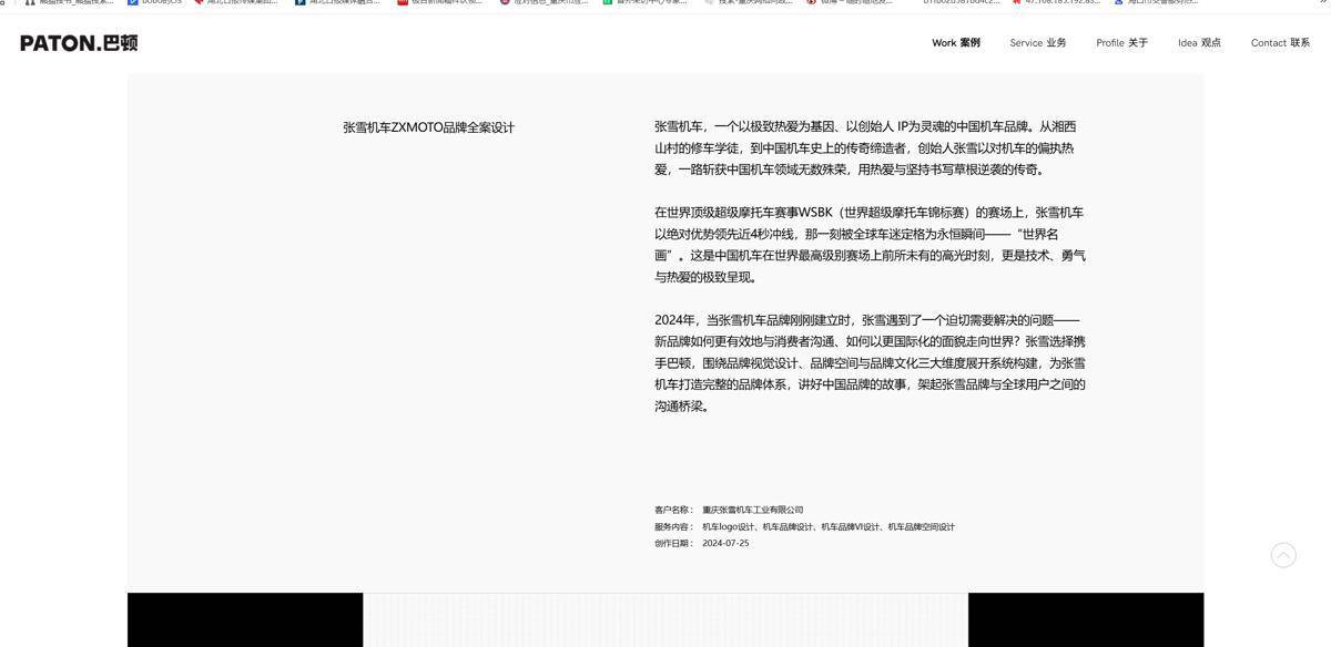 简介:据公开信息显示,设计公司系杭州巴顿品牌设计有限公司,该公司官网展示了张雪机车ZXMOTO品牌全案设计案例,包括LOGO、店面、服装、员工工牌等,设计理念是商标以张雪首字母ZX为核心,用利落几何线条重构,以凌…